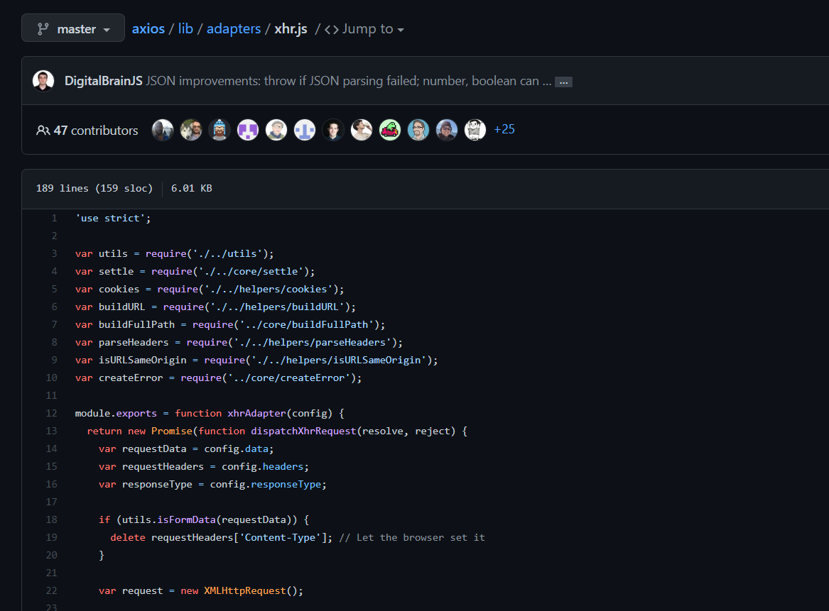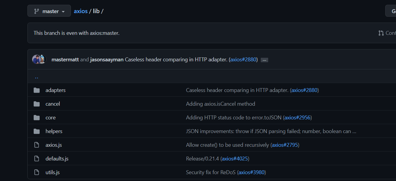그래서 깃허브에서 axios repo를 fork해서 코드를 분석해봤다. 간단하고 직관적이더라. (가독성을 위해서 포스팅을 쪼갤까 조금 고민해봤으나 귀찮아서 생략)