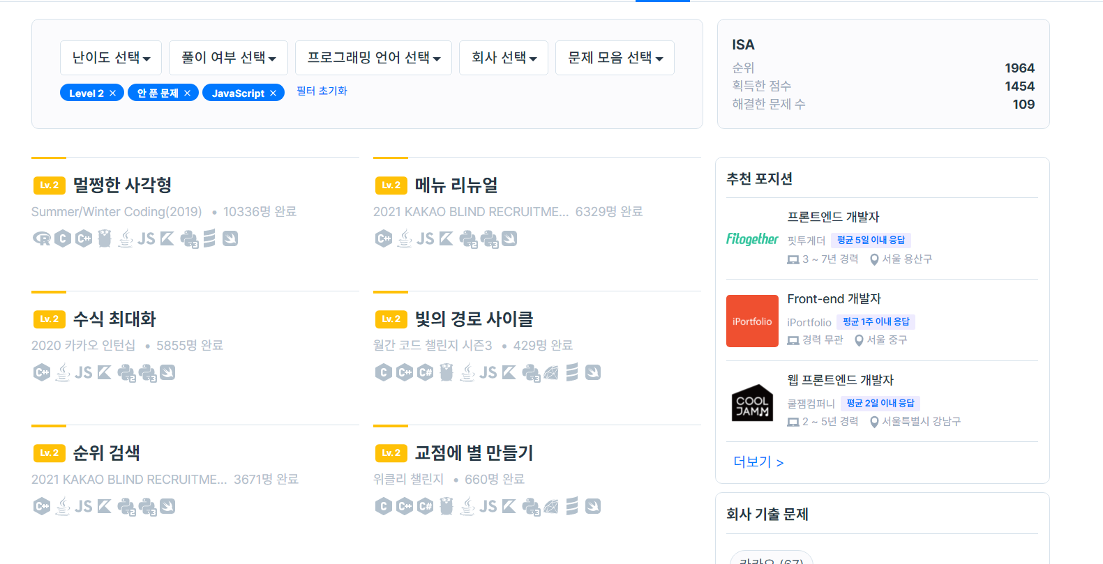 이번 년도 말까지 3레벨 다 풀거라고 생각 하지는 않았지만 너무 힘들다. ㅜㅜ 한문제, 한문제 푸는게 너무 재미 없어서 하기가 싫다. 2레벨 6문제 남긴했지만, 저거 다풀고 3레벨이 아닌 프로젝트 진행좀 해야겠다. 맛도 없는거 계속 퍼먹으니까 죽을 맛인 것 같다. 쉬워지는 것과 비례해서 아무 생각도 하기 싫어진다.