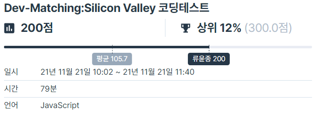 3문제 1문제당 100점이였고 1번째 문제와 2번째 문제를 풀어서 각각 100점씩 도합 200점으로 마무리했다. 문제 난이도 수준은 프로그래머스 2~3레벨 수준으로 보였고, 1레벨 문제는 하나도 없었다. 그리고 4레벨 문제도 없었다. 진짜 안내한 내용대로 2~3레벨 풀 정도면 수월하게 풀 수준이였다. 다만 2레벨 문제를 모두 푼 입장에서 봤을때 중복 문제는 안나왔다. 연습용으로 제공 되는 문제랑 똑같은 문제를 내지는 않는 것 같다. 아니면 전부 3레벨 문제였다던가.