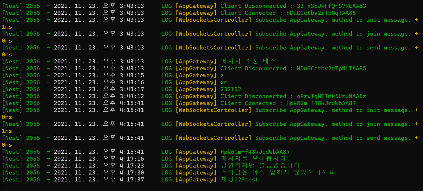 실제 e2e 테스트 결과 별다른 문제점은 발견되지 않았다.(당연히 혼자 메시지를 주고 받는게 다니까)