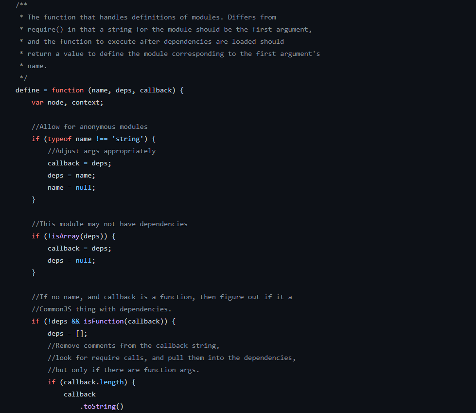 일단 진행하는 사이드 프로젝트 자체가 바닐라 js라는 제약사항을 자체적으로 걸었다보니 RequireJS를 통한 모듈 관리를 하기보다는 직접 간단하게나마 모듈로더를 개발해보기로 했고, 그러기 위해서 RequireJS를 어느 정도 분석 할 필요가 있었는데 이건 그 과정에서 느낀바를 조금 정리해보는 내용이다.(서론이 너무길었나?)