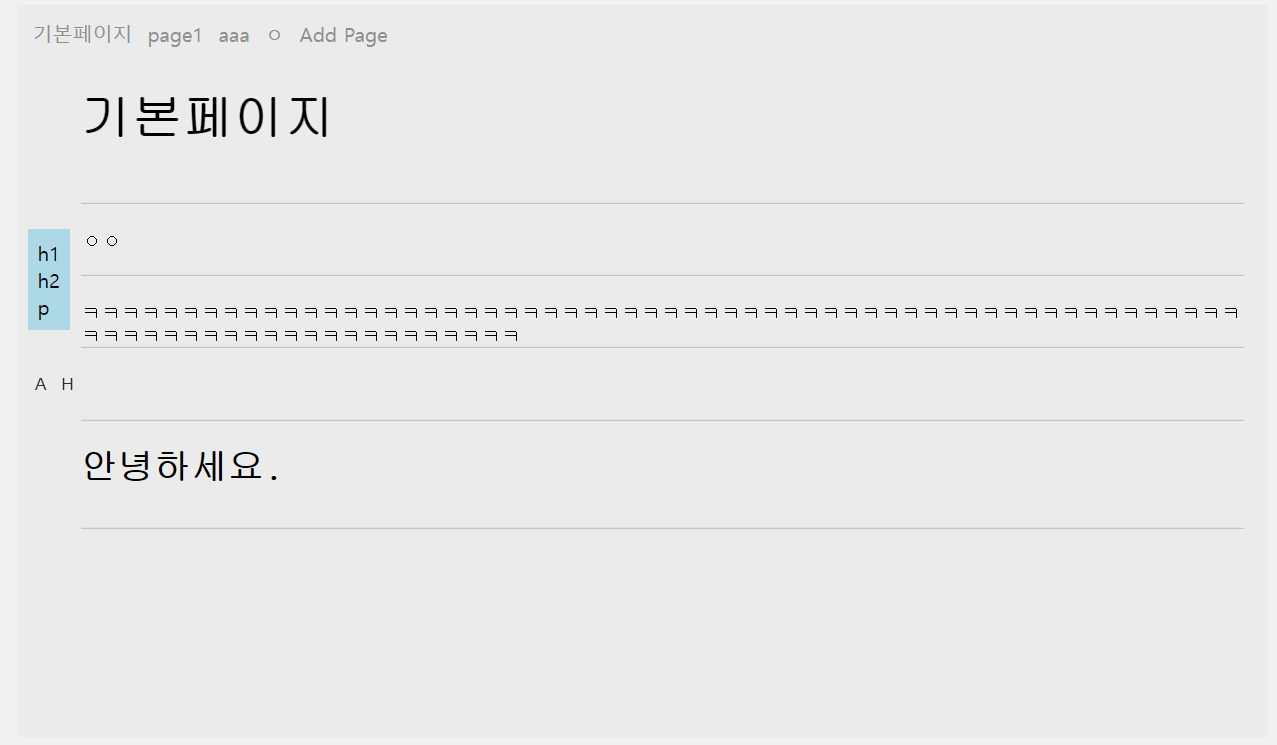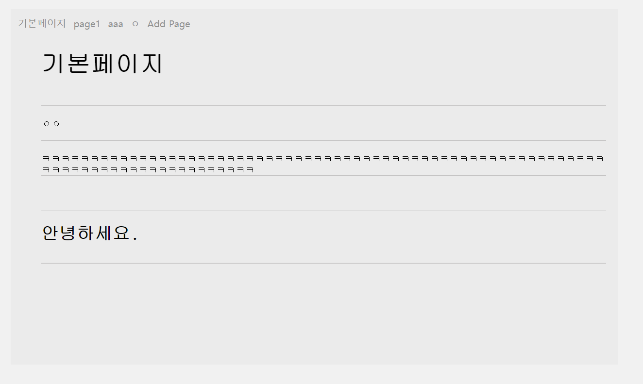 pageList는 아래의 페이지 목록이고, 페이지를 선택해서 라우팅 하는 것과 새로운 page를 추가하는 기능을 간단히 구현해줬다.