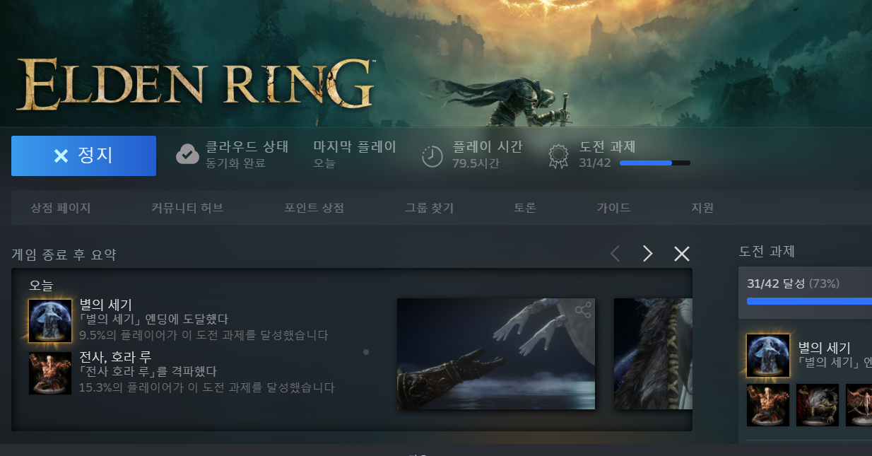엘든링을 플레이한지 79시간만에 첫 엔딩을 봤다. 내 선택은 진엔딩이라 평가 받는 별의 세기 엔딩.